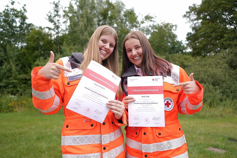 Das DRK Hasbergen kann nun zwei weitere Helferinnen unseres Fachdienstes Sanität bei allen Diensten und Einsätzen einsetzten. Im Anschluss nach dem Sanitäter- Lehrgang warten noch weitere fachspezifische Ausbildungen. Ebenfalls findet zeitnah die Einarbeitung in den Einsatzdienst der Sanitäter vor Ort statt.